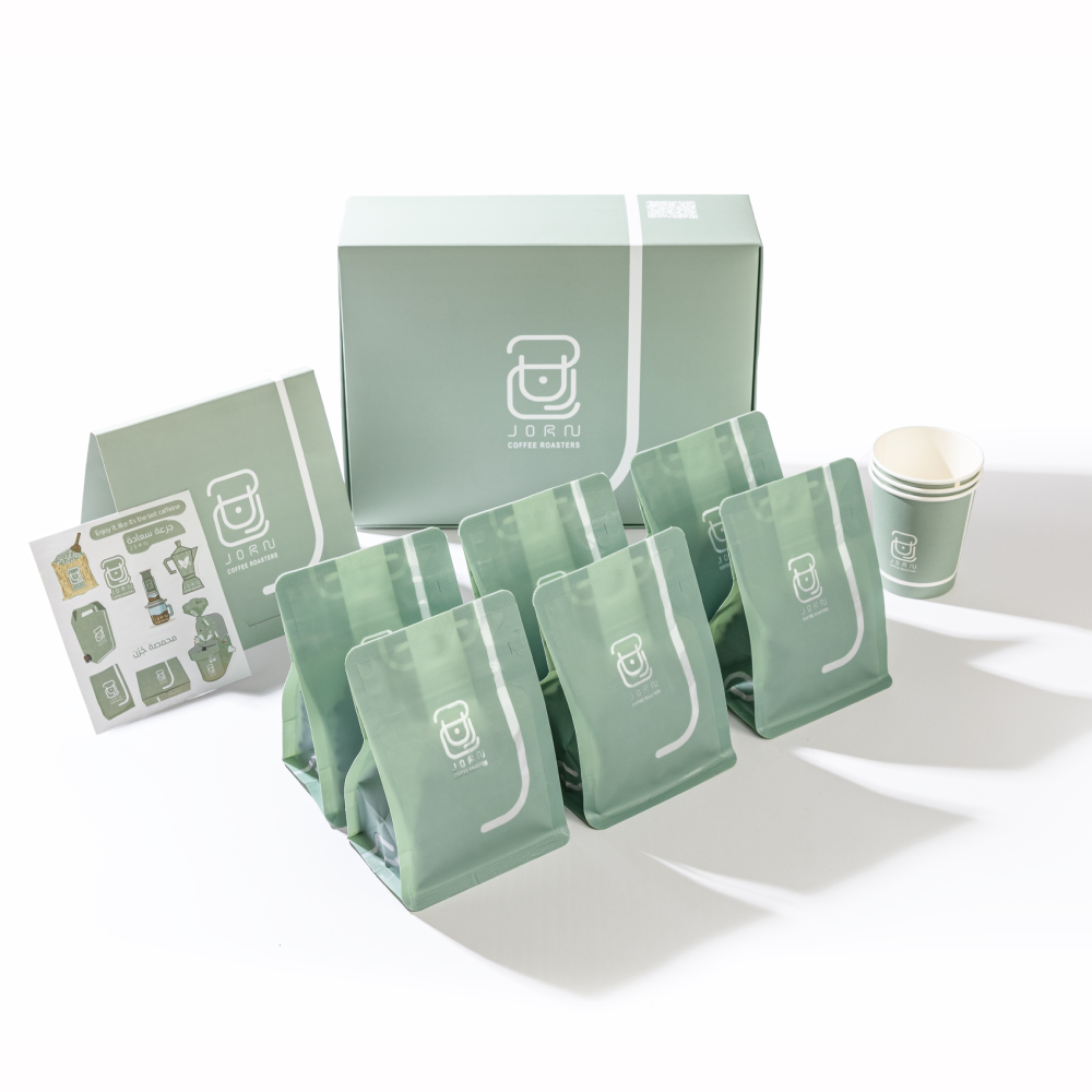 بوكس التذوق من محمصة جرن يضم 6 محاصيل قهوة مختصة منتقاة بعناية لتجربة متنوعة من النكهات والإيحاءات المختلفة ، مناسب لمحبي القهوة المقطرة والإسبريسو محاصيل البوكس :